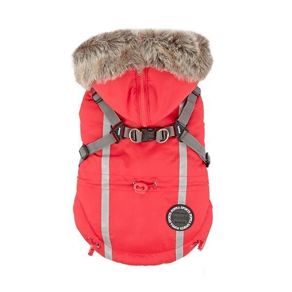 Krásná zimní bunda zahřeje Vašeho psího miláčka v chladných dnech. Kapuca je lemována kožíškem. Materiál: POLYESTER100% Barva: červená, černá Velikost: S, M, L...