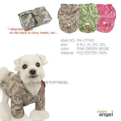 Puppy Angel Combat Camo Rain Coat Stylová pláštěnka s kapucí. Uvnitř má síťovinu. Zapínání na suchý zip. Velikost krku, Délka hrudníkuS 36 cm / 14,2 palců 25 cm...