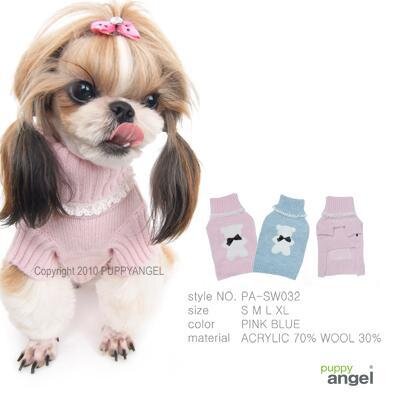 Puppy Angel Yellowstone Bear Teplý svetr z vlny. Má krásného medvěda s mašlí na zádech. Zdobené bílé volánky kolem krku. Velikost hrudníku, Délka krkuS 35 cm /...