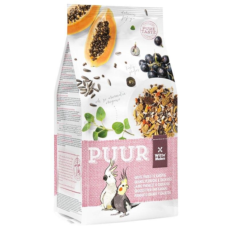 PUUR Large parakeet&cockatoo - stř. papoušek 750 gPopis produktu:Witte Molen PUUR – skutečný požitek z ryzích přírodních chutí a vůní.Receptura PUUR Large Parak...