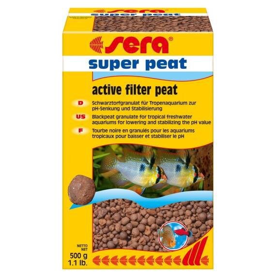 sera super peat do akvária uvolňuje hodnotné huminové kyseliny a stopové prvky ve správných dávkách. V závislosti na stávajících hodnotách vody sera super peat sníží uhličitanovou tvrdost a hodnotu pH. pH hodnota je dlouhodobě konstantně udržována v nižší hodnotách kyselé škály. V těchto hodnotách se tropické ryby cítí lépe. sera super peat potlačuje plísně, bakteire a řasy. sera super peat použijte místo sera super carbon. Vhodné pro úpravu vody v chovných nádržích.