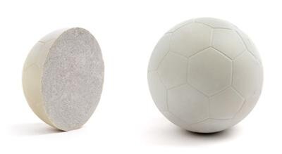 Uvnitř hračky je zašitý plný míč z pružné pórovité gumy.