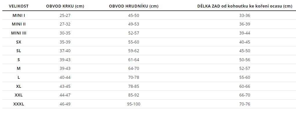 - jsou na něm našité reflexní prvky, tak aby byl pes viditelný ze všech stran