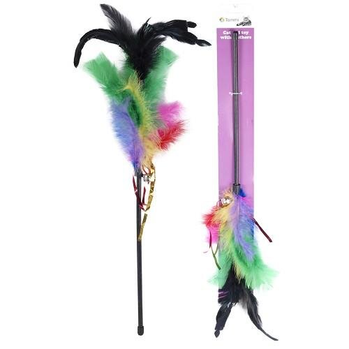 Oblíbená hračka pro kočky udice - mávátko s barevným peřím a rolničkou. Hra a zábava bez bolestivých škrábanců!