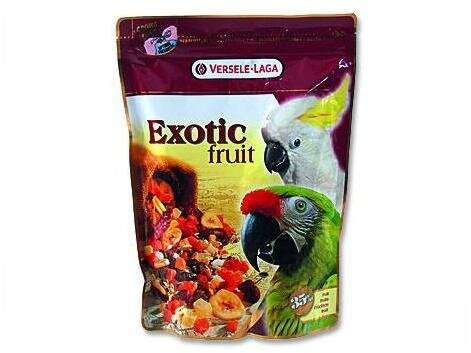 - Versele-Laga Exotic Fruit je pochoutka, která papoušci prostě milují. Vyžadují dostatek různých druhů ovoce, ale stejně si vychutnají i bohatou směs zrnin a semen.