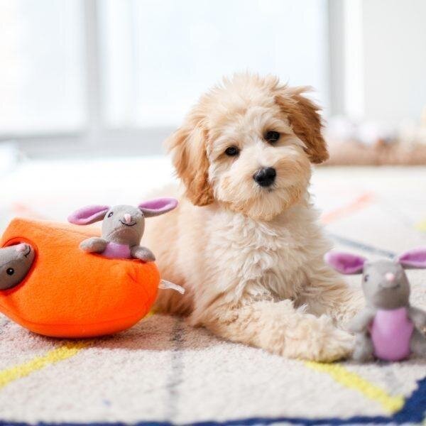 Krásná a velice vtipně zpracovaná interaktivní hračka pro psy. ZippyPaws Burrow je domeček ve tvaru mrkve, ze kterého musí pes díky své šikovnosti vytáhnout uvnitř ukryté králíčky. Do hračky můžete vložit i pamlsek jako odměnu.